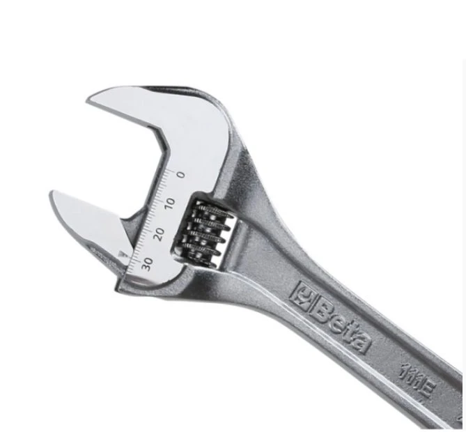- The new adjustable wrench with scale, Beta 111E, allows differently sized nuts and bolts to be tightened and loosened through the sliding jaw, which can be adjusted through the central roll.