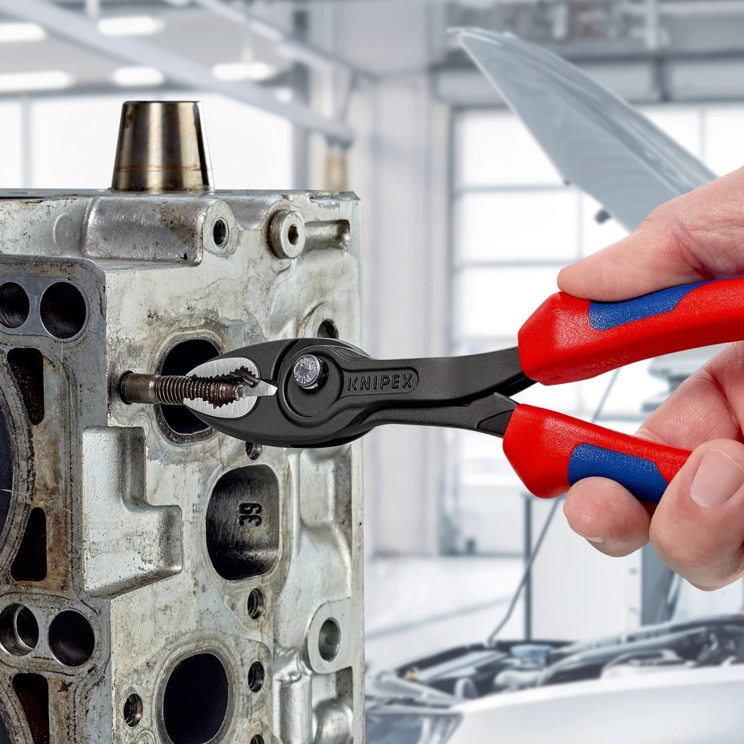 - 82 02 200 KNIPEX TwinGrip-Unique combination: Front grip and side grip function, box joint, push button adjustment.