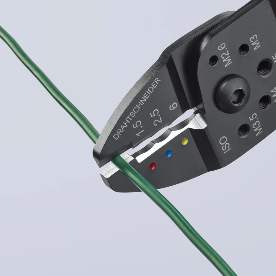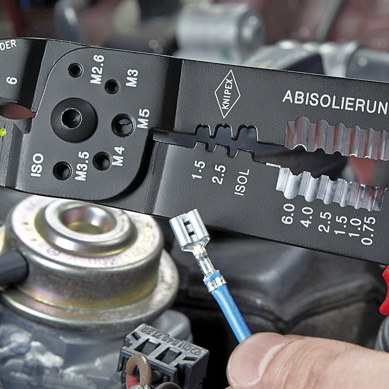 - For cutting cables, stripping wire and crimping insulated and non-insulated terminals, connectors and plug type connectors