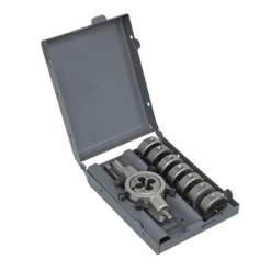 - Includes one long handled adjustable tap wrench with professional type sliding jaw, steel die holder with retention screws suitable for dies from M3 up to M12 and Metric thread gauge.