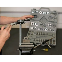 - 7 taps, 7 dies, pitch gauge, 7 drill bits,